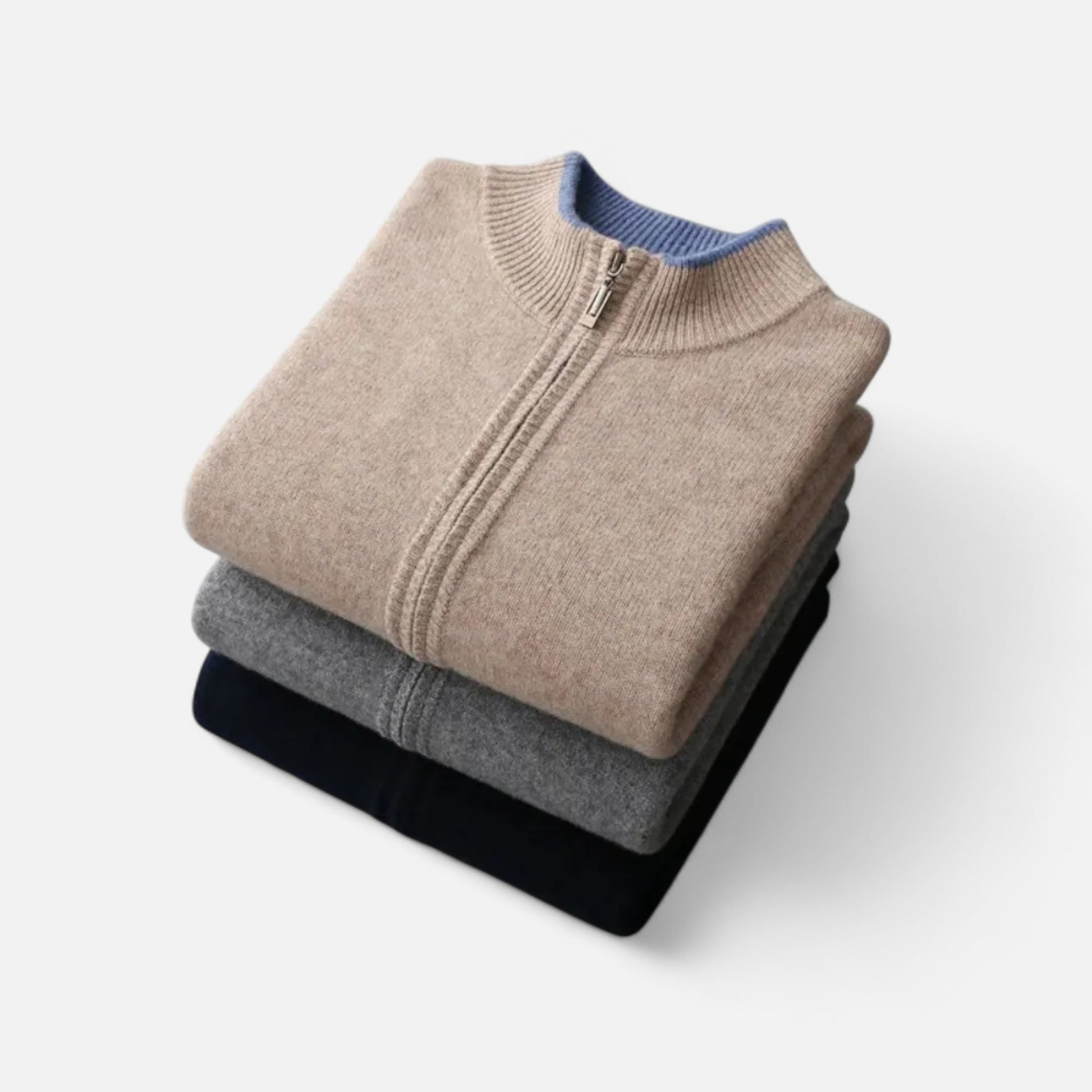 Your comfort is assured with the natural softness and breathable warmth of Merino wool. The mock neck design and zip-up closure provide versatility, making it perfect for layering in cooler months while maintaining a polished, composed look.